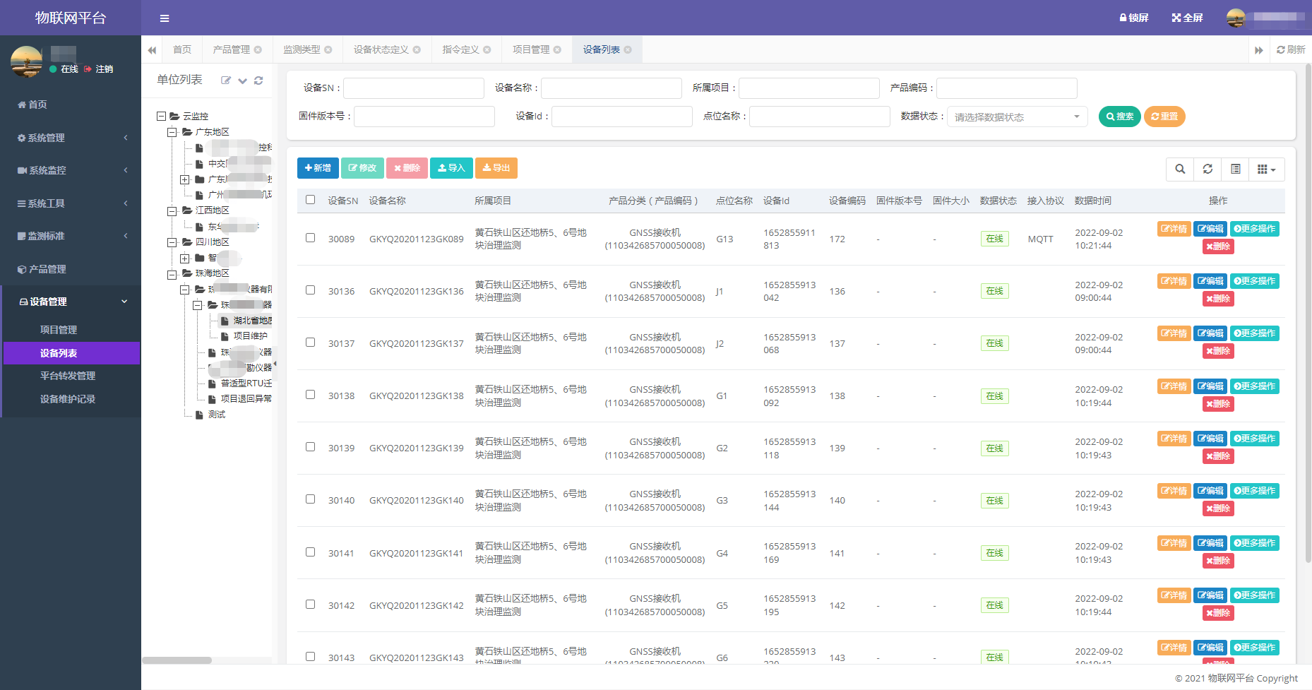 具备完善的产品管理、设备管理和项目分类,支持多级子账号管理,可为项目管理人员和设备运维厂商分配不同权限管理账号;