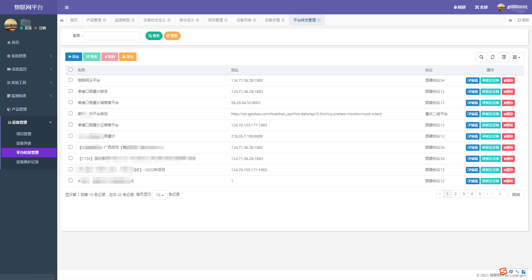 内置多种数据转发协议,通过绑定设备,完成多路第三方平台数据转发,并提供历史数据转发功能