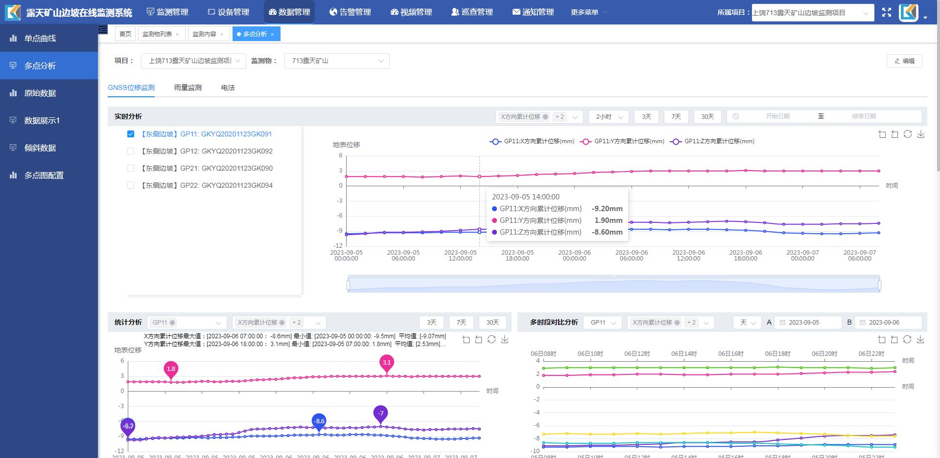 监测内容涵盖表面变形、视频图像、内部变形、应力、地下水、爆破振动、降雨量、表面变形和视频图像