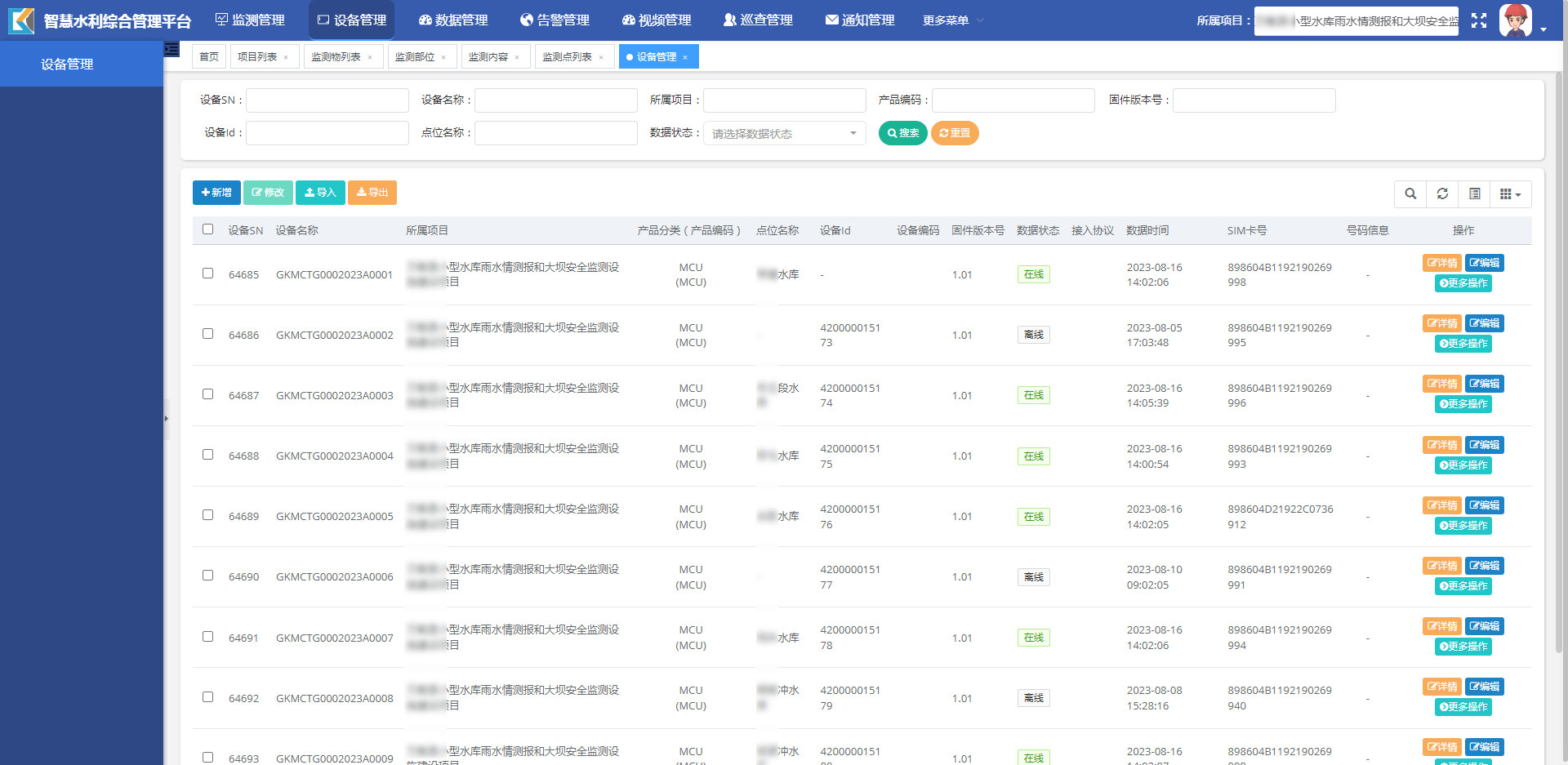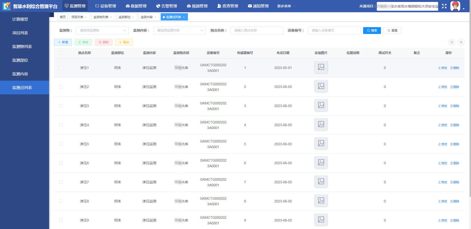 监测点列表