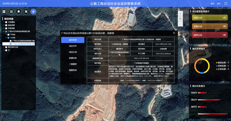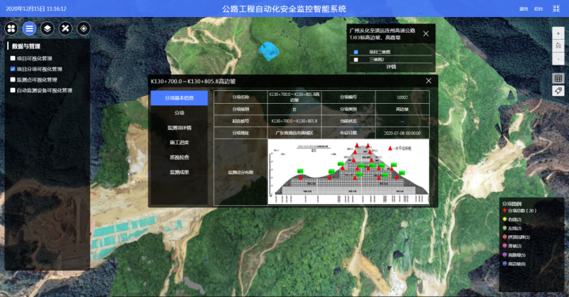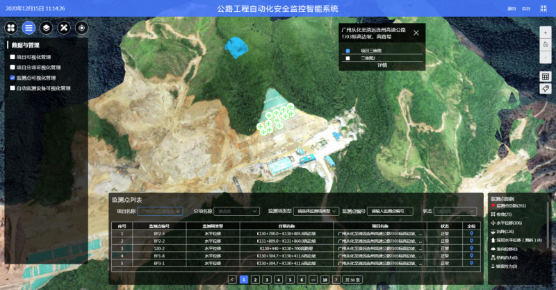 融合GIS引擎和无人机三维倾斜摄影,实现了项目信息和监测数据的可视化显示;
